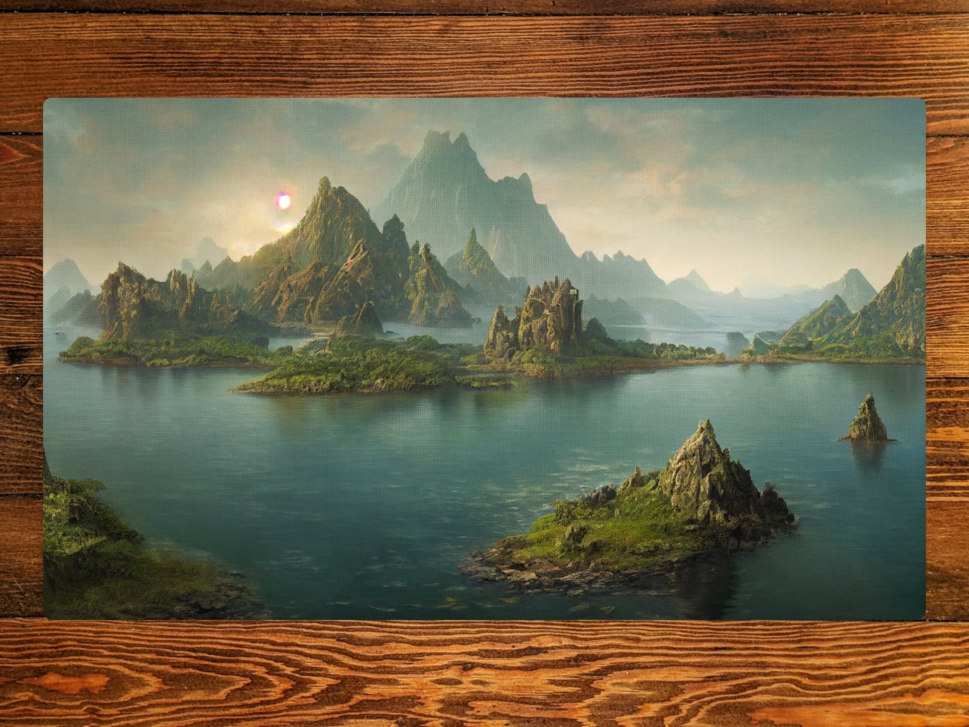 Island 14" X 24" Playmat For Card, Ccg, And Tabletop Games With Magic Edh Zone Layout Option For Commander