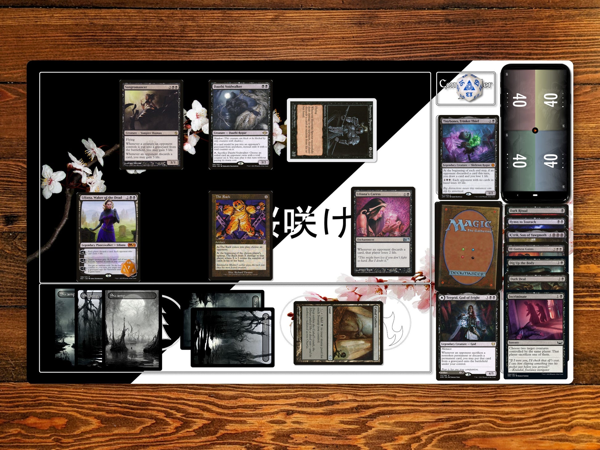 Sakura Bloom 14" X 24" Playmat For Card, Ccg, And Tabletop Games with EDH Zone layout option for Commander